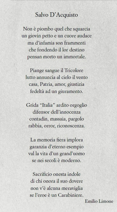 Il Generale di Corpo d'Armata Salvatore Luongo, Comandante Generale dell'Arma, a nome suo e di tutti i Carabinieri d'Italia, esprime la più sentita gratitudine a Sua Santità Papa Francesco per il Decreto che riconosce l'offerta della vita del Servo di Dio Vice Brigadiere Salvo D'Acquisto, Medaglia d'Oro al Valor Militare, elevandolo al titolo di "Venerabile".